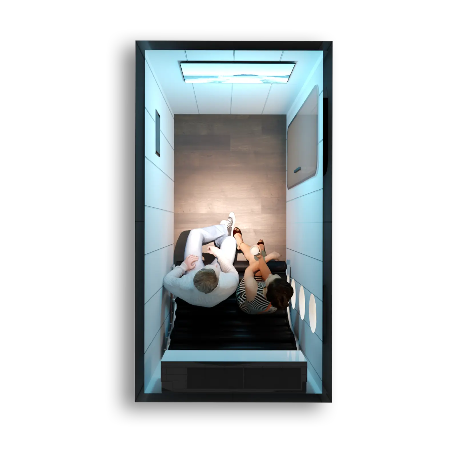 The final appearance and size of the chamber may vary slightly depending on the selected pressure level due to technological constraints. The visualizations are for illustrative purposes only. The suggested number of people who can use the chamber depends on its internal configuration.